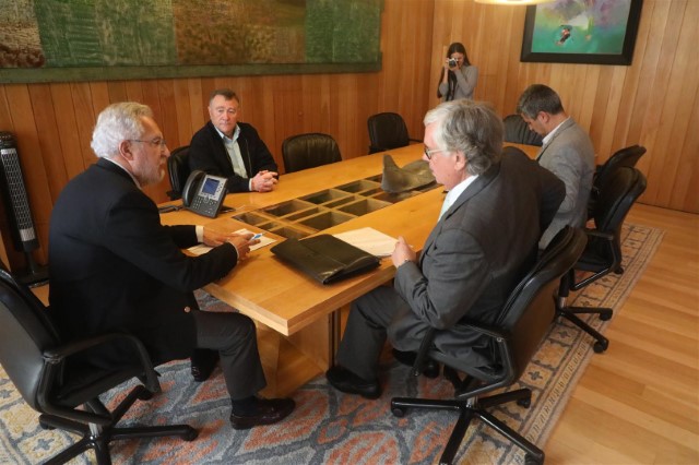 Además del presidente de Confederación Mar-Industria Alimentaria, Juan Manuel Vieites Baptista de Sousa/Sousa, en la reunión con el titular del Parlamento de Galicia participaron Juan Maneiro, secretario general técnico de Agade, y Torcuato Teixeira, asesor de la Federación Nacional de Cofradías.