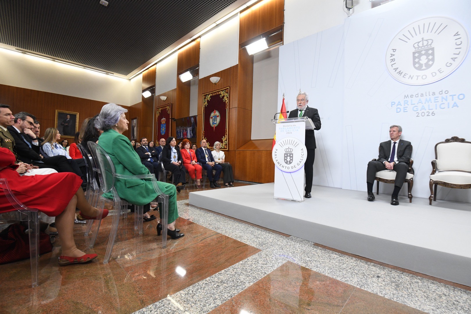 Por otra parte, destacó que son la estabilidad política y social que caracterizan Galicia las que permiten que permanezca alejada de las tensiones y de las polarizaciones que condicionan otros escenarios geográficos. «Si Galicia ejerce una autonomía plena −remarcó− es a consecuencia del Estatuto que hoy conmemoramos».