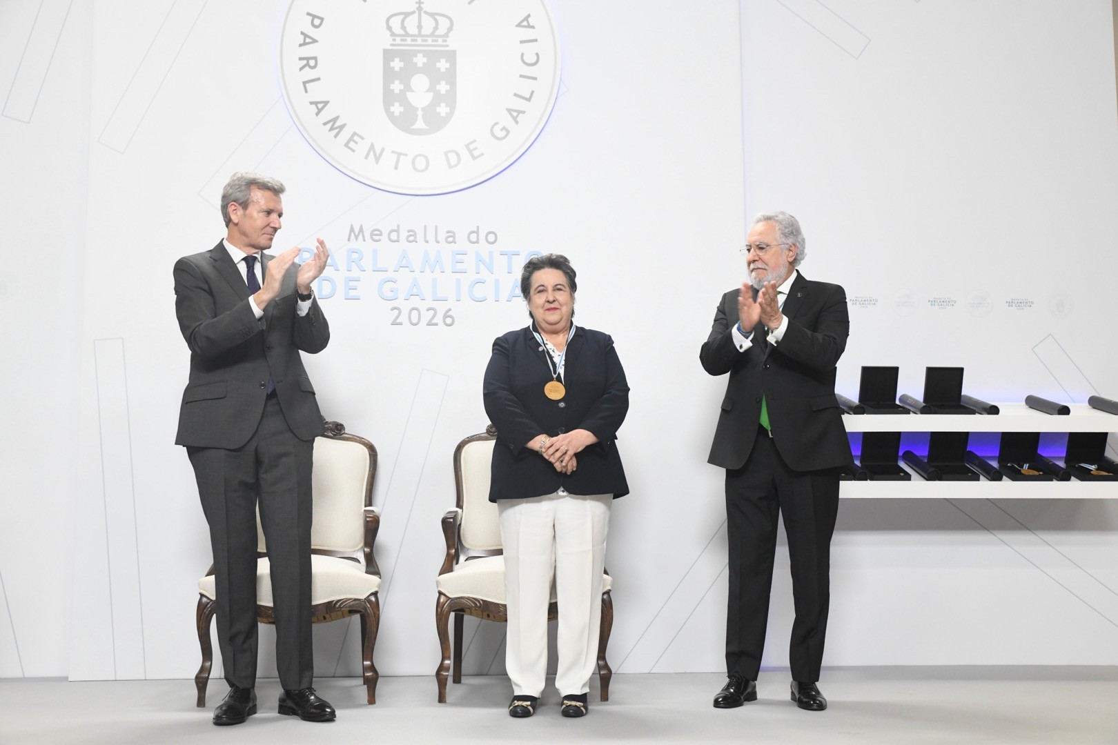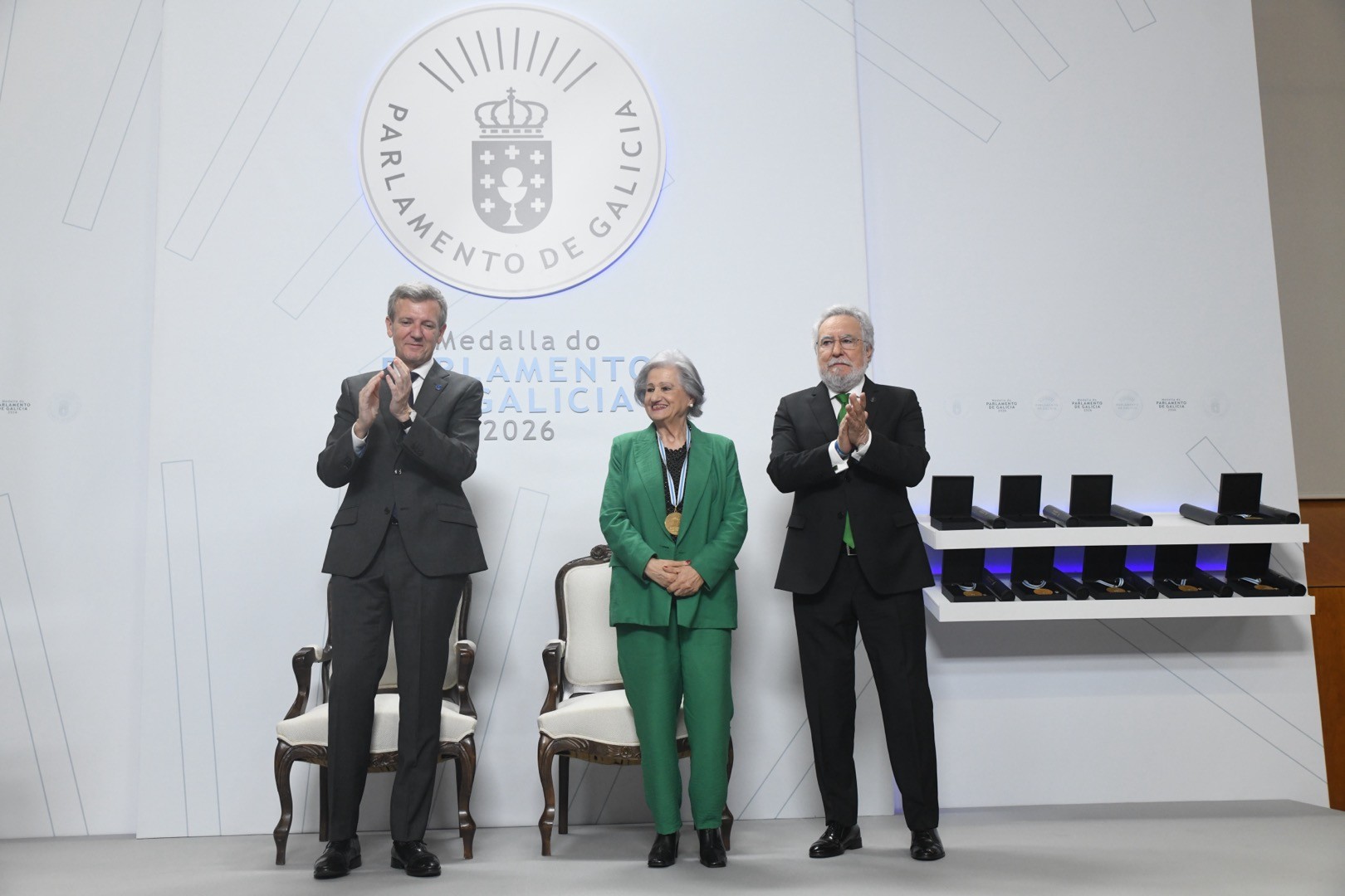 Santiago, 6 de abril de 2026.- El presidente del Parlamento de Galicia, Miguel Ángel Santalices Vieira, destacó «el compromiso y la dignidad» de las nueve diputadas gallegas que hace treinta años participaron en la IV Conferencia Mundial de la Mujer celebrada en Beijing, junto con el trabajo desarrollado en la Cámara por Manuela López Besteiro, para avanzar en la igualdad de género y situar las mujeres «en lo merecido centro de todas las políticas públicas». Todas ellas fueron distinguidas hoy con la Medalla del Parlamento de Galicia 2026, en un acto en el que se conmemoraron los cuarenta y cinco a los de vigencia de nuestro Estatuto.