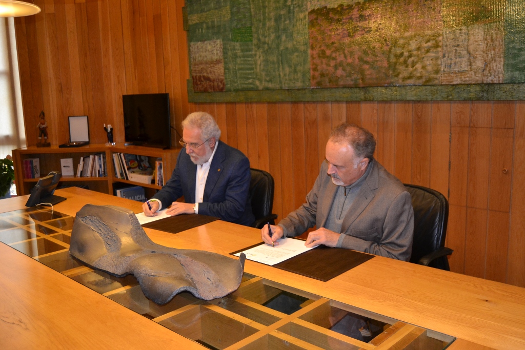 Santiago, 27 de noviembre de 2018.- El presidente del Parlamento de Galicia, Miguel Ángel Santalices Vieira, y el responsable de la Real Academia Galega de Bellas Artes Nuestra Señora del Rosario, Manuel Quintana Martelo, firmaron esta mañana un convenio de colaboración orientado a la difusión, estudio, investigación y conservación de la colección de arte de la Cámara gallega y del propio edificio que la alberga.