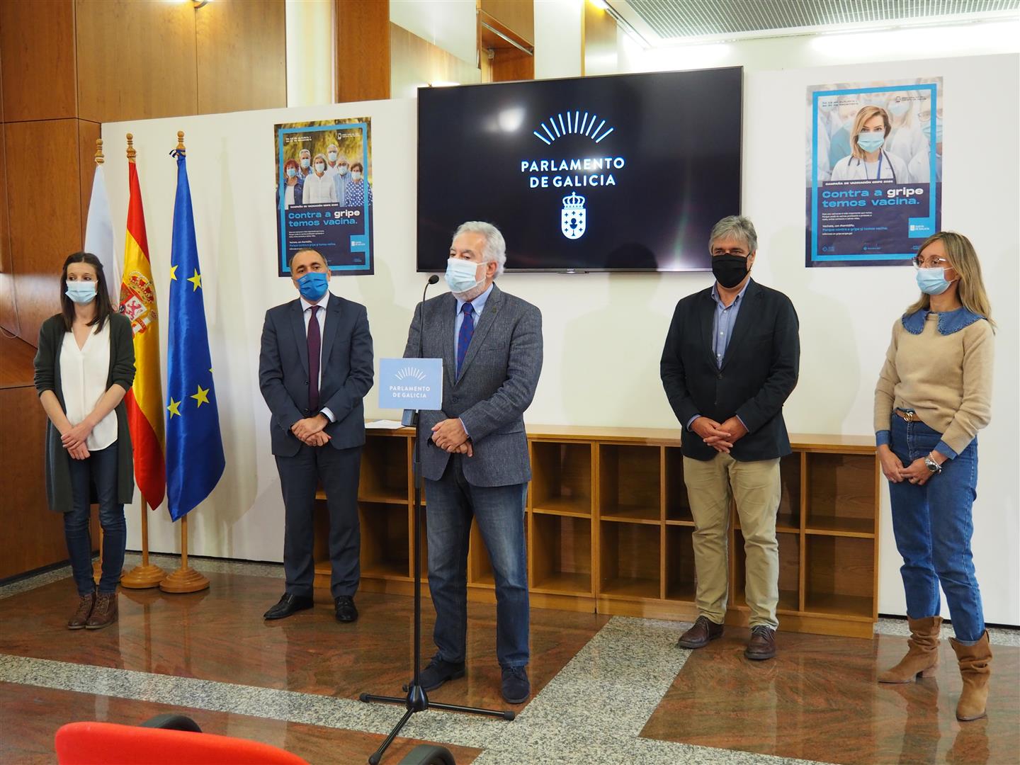 Santiago, 14 de octubre de 2020.- El Parlamento de Galicia acogió esta mañana una jornada de animación a la vacunación antigripal que contó con la participación del presidente de la Cámara, Miguel Ángel Santalices Vieira; el consejero de Sanidad de la Xunta, Julio García Comesaña, así como diputadas y diputados de los tres grupos parlamentarios.
