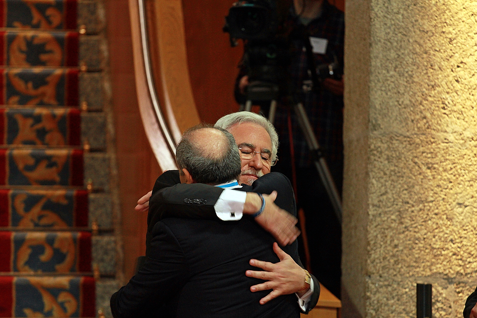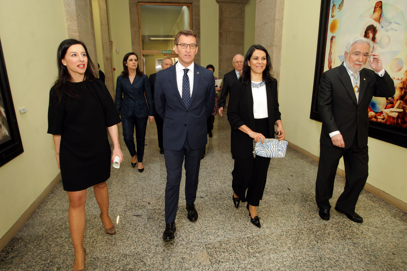 Llegada al parlamento de los homenajeados, Presidente del Parlamento, y Presidente de la Xunta de Galicia
