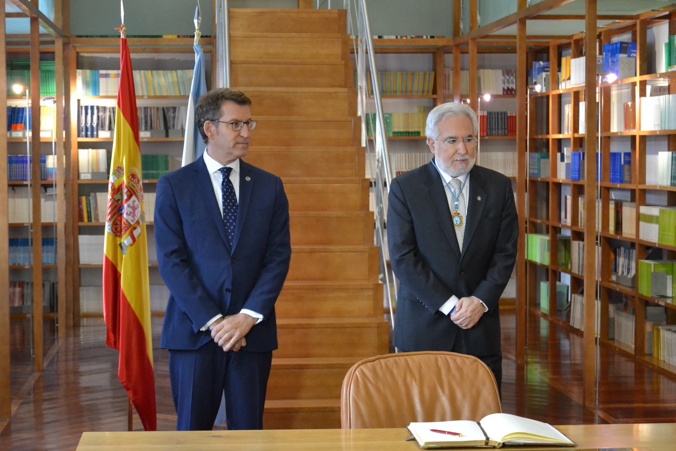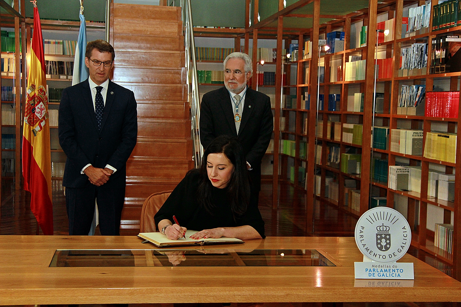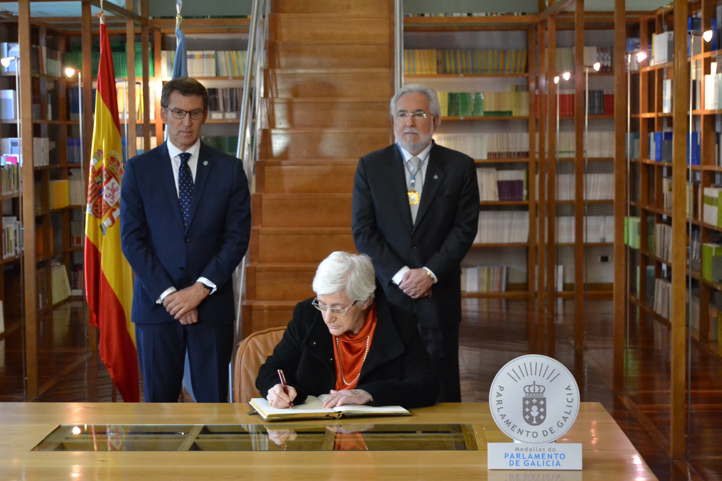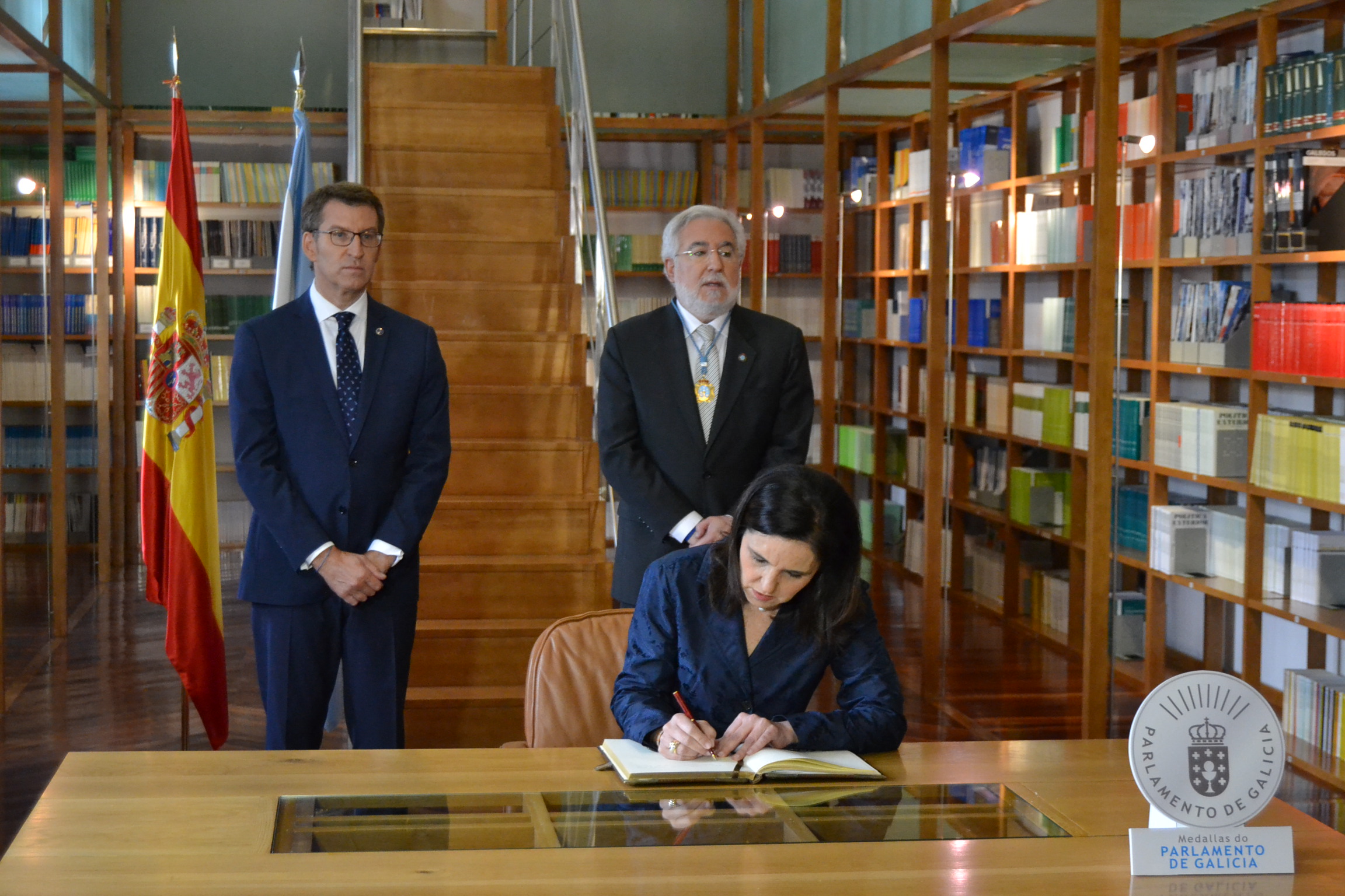 Firma de los homenajeados en el Libro de oro del Parlamento. Presidentes del Parlamento y de la Xunta de Galicia